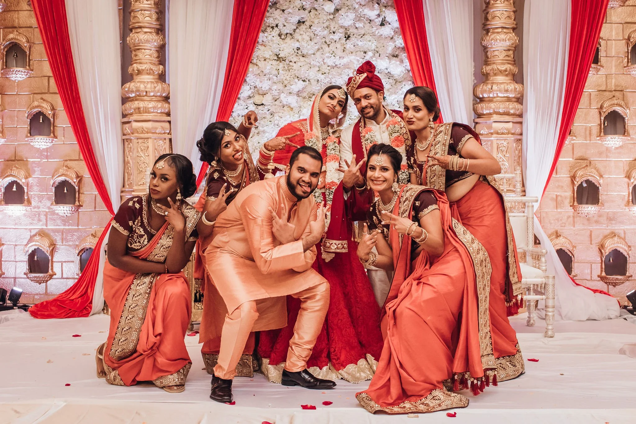 Rohan & I both decided we wanted to cover as many costs as possible for our bridal party - so this included budgeting for their coordinated outfits (suit rentals for guys, sari & dress purchases for the gals, a kurta for my bridesman), Indian jewelry sets for their saris, makeup & hair services for the bridesmaids for the ceremonies where they were wearing their coordinated outfits, hotels for the nights I wanted my bridesmaids to stay close together for our MUAH services and other incidentals! I left things like shoes, western jewelry and other things up to my bridesmaids, and encouraged them to wear what they felt most comfortable in.