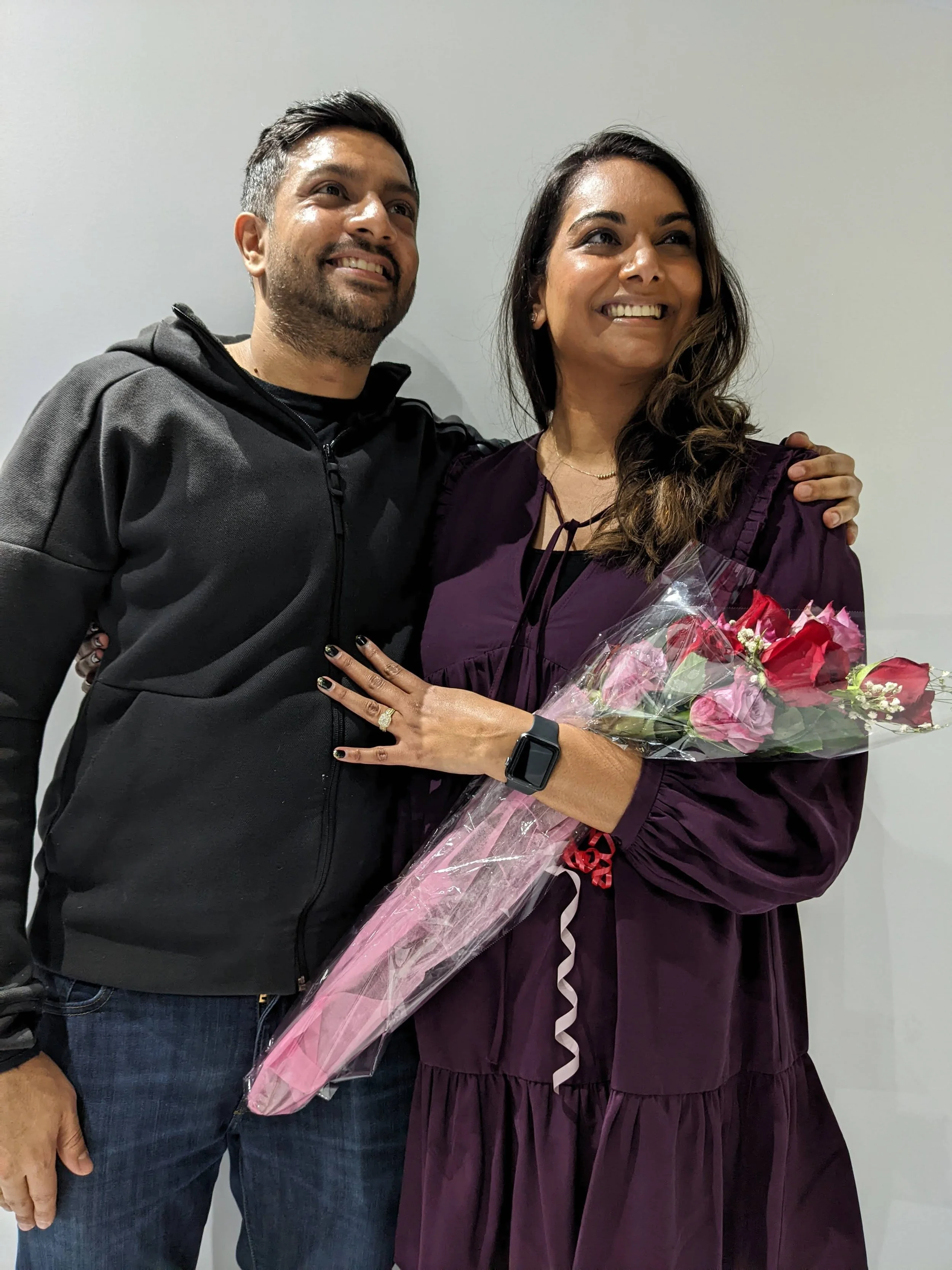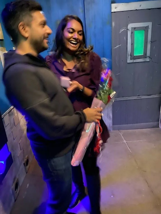With the help of his awesome sister (my new sister-in law) Roma and my 3 fantastic cousins, Sabrina, Annie and Shiva - Rohan planned a ‘super casual’ escape room day for our group to spend New Year’s together. None of this was surprising, or set off any alarms in my head because our group had bonded over virtual and in-person escape rooms as well as scavenger hunt adventures to stay connected throughout the pandemic. But to make extra sure I didn’t suspect anything (especially since we had been discussing our plans for marriage for some time) Rohan also told me he made us reservations at some fancy French restaurant neither of us can pronounce the name of for the following week. He also advanced his proposal to New Year’s when his holiday travel plans fell through, just to make extra sure I wouldn’t be suspecting anything. Every time Rohan has been asked why throwing me off the scent’ in multiple ways’ was so important to him he tells people: “I have seen her guess the ending of way too many movies…”