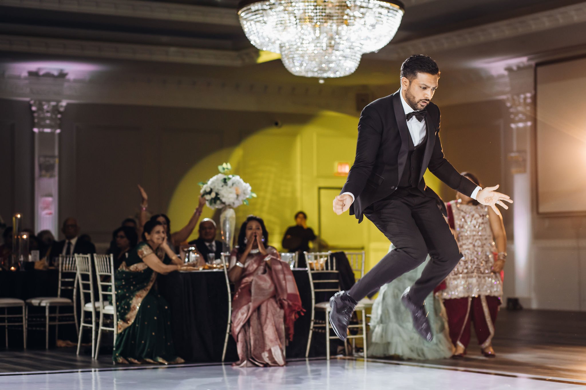 We needed to make sure we had a reception venue with high enough ceilings for Rohan’s jumps… | PC: Flashing Lights Photography